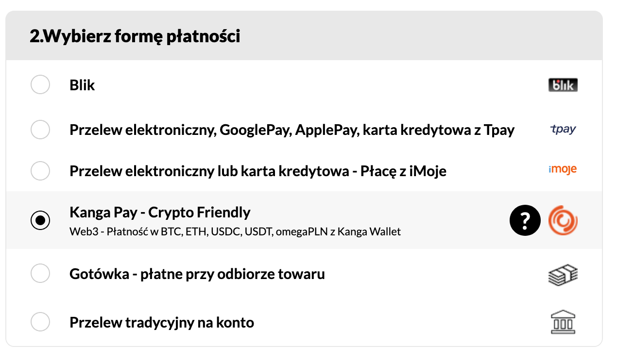 - Wybór metody płatności: Po dodaniu produktów do koszyka i przejściu do podsumowania zamówienia, wybierz opcję „Płatność kryptowalutami”.