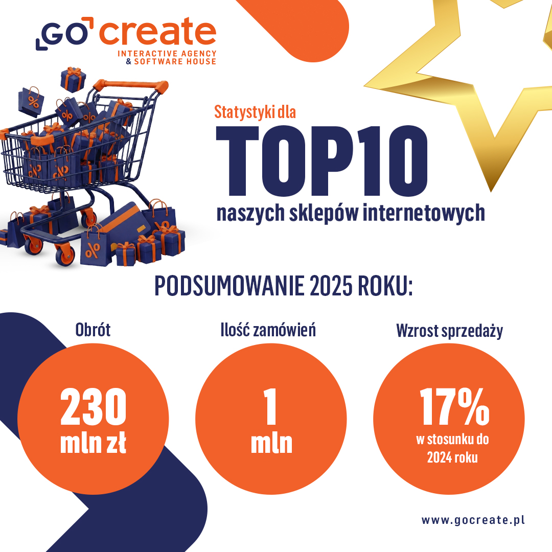 Podsumowanie 2025 roku – TOP10 sklepów internetowych obsługiwanych i zrealizowanych przez GOcreate w liczbach!